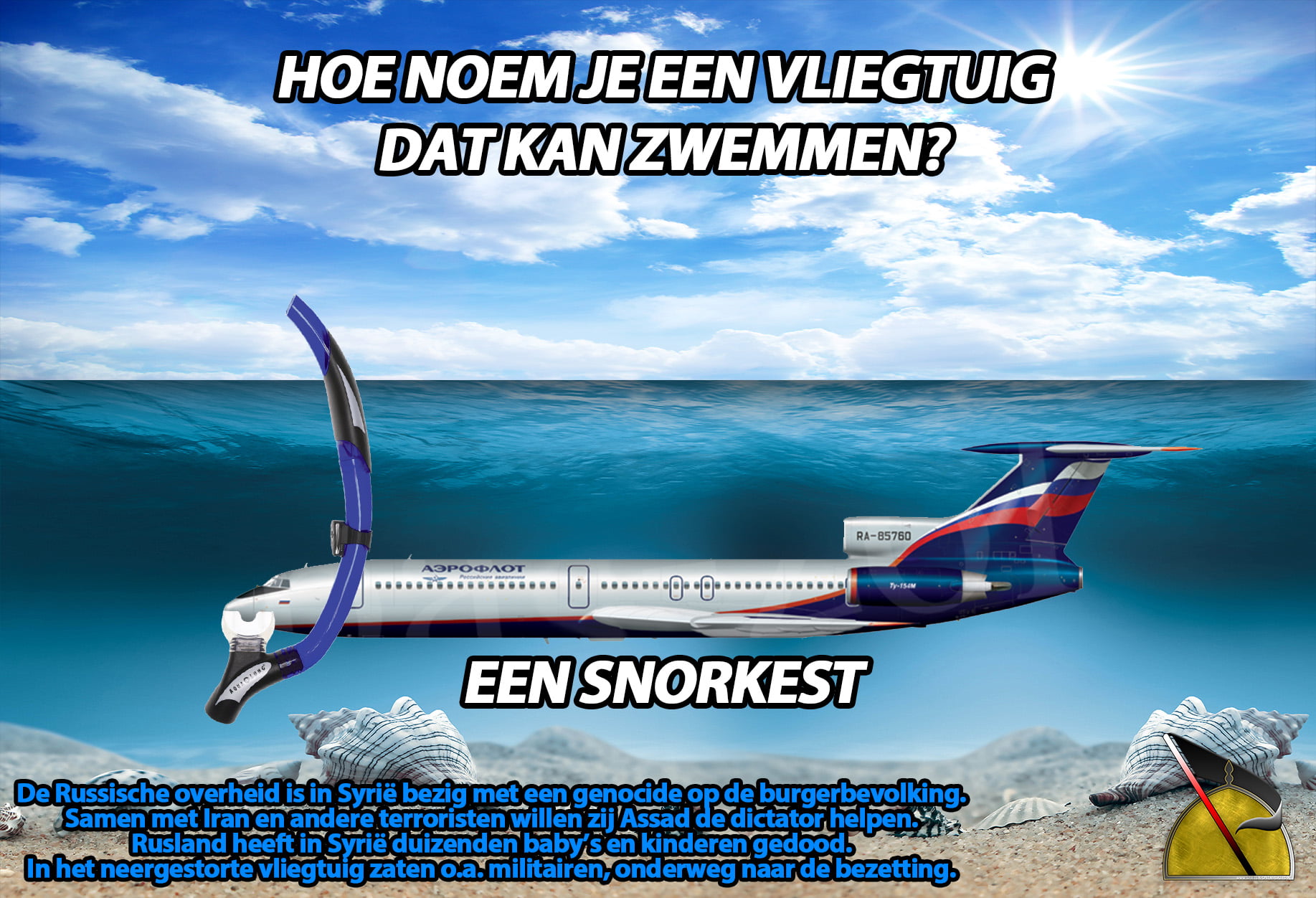 Een Russisch militair toestel met daarin een orkest, soldaten en journalisten is neergestort in Rusland. Het toestel was onderweg naar Syrië, waar Rusland samen met Assad en Iran een genocide uitvoert op de onschuldige Syrische burgerbevolking.