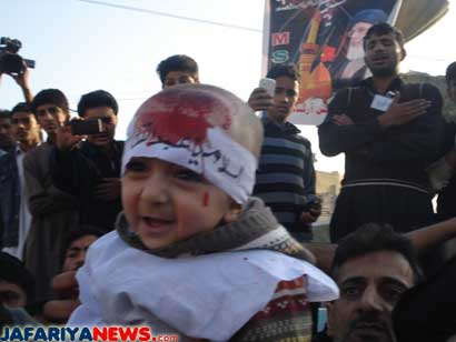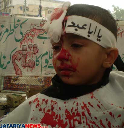 Vraag: ”Sommige vrouwen snijden de hoofden van hun kinderen van 1 of 2 jaar ter nagedachtenis van Abi Abdallah, is dit toegestaan?” Antwoord: ”Ja het is toegestaan, sterker nog, het is aangeraden met de toestemming van de vader of opa van het kind. Het is een aanleiding om liefde te ontwikkelen voor de Ahl al Bayt” http://s-alshirazi.com/masael/subject/shaaer/letter1.htm [Officiële website]